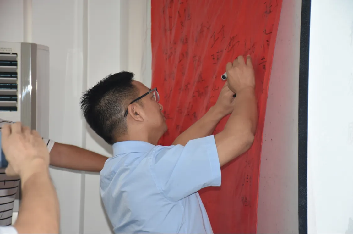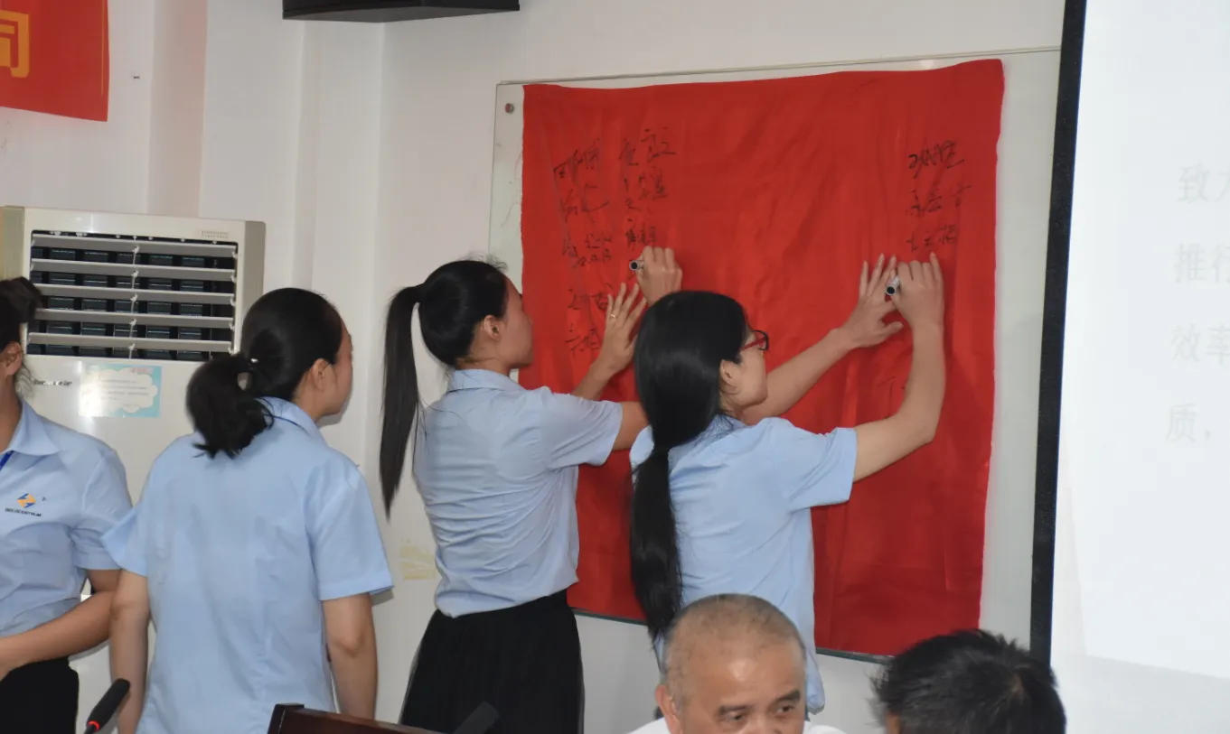 宣誓完后全体干部上台在落实现场改善大旗上签名,共同开启改善的航程